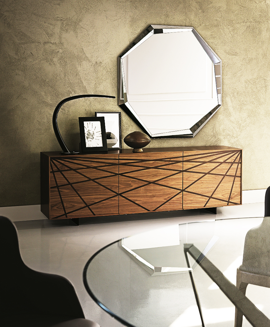 Adoptez le buffet La Marquise, au design contemporain et géométrique pour ajouter une touche de contraste avec votre intérieur sobre et épuré. Ce dernier comprend 3 volets à portes battantes. La finition des lignes est délicate et raffinée
