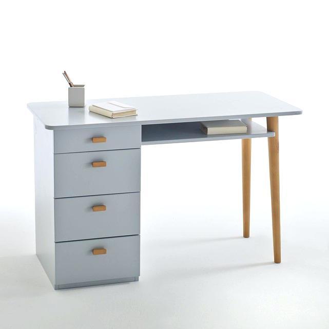 Le bureau Oslo, prônant le style épuré et scandinave est sophistiqué, minimaliste et raffiné. Il comprend un espace de travail, un plan à bas niveau coulissant ainsi qu’une rangée de rangement à 4 tiroirs.