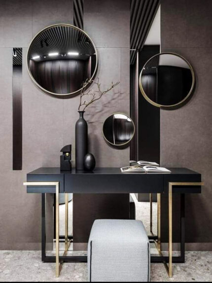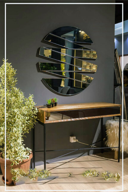 Pour sublimer et mettre en valeur l’espace vide de votre hall, adoptez le meuble d’entrée Opéra, parfait pour valoriser vos objets décoratifs. Ce meuble comporte des tiroirs pour y déposer vos ustensiles indispensables. Il est accompagné par des éléments de décoration muraux à miroirs en double, assorti au tout !