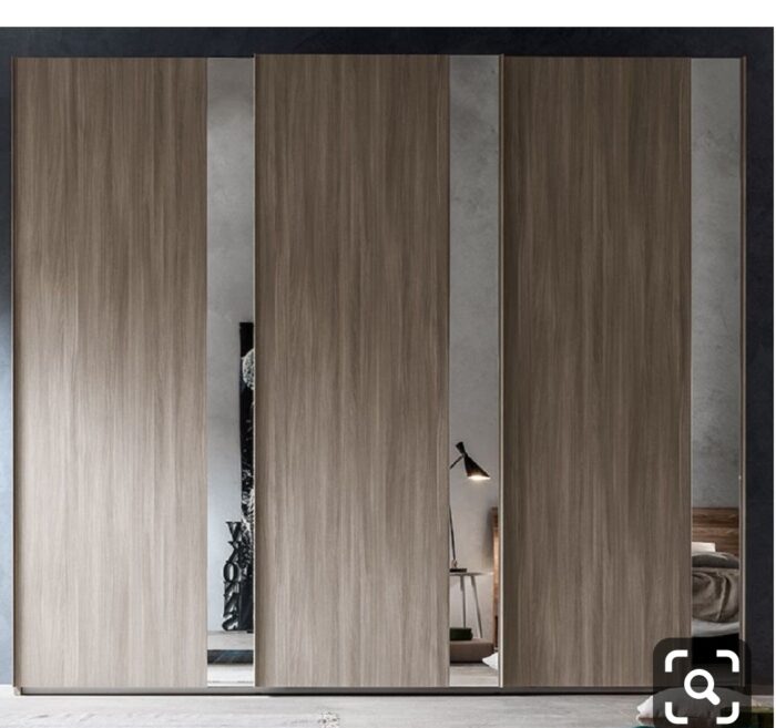 Cette armoire comprend 3 volets aux portes coulissantes avec des miroirs fins, donnant plus d’éclat à la pièce. Equipée de tringle, de tiroirs et d’étagères, elle saura contenir vos habits de la meilleure manière possible.