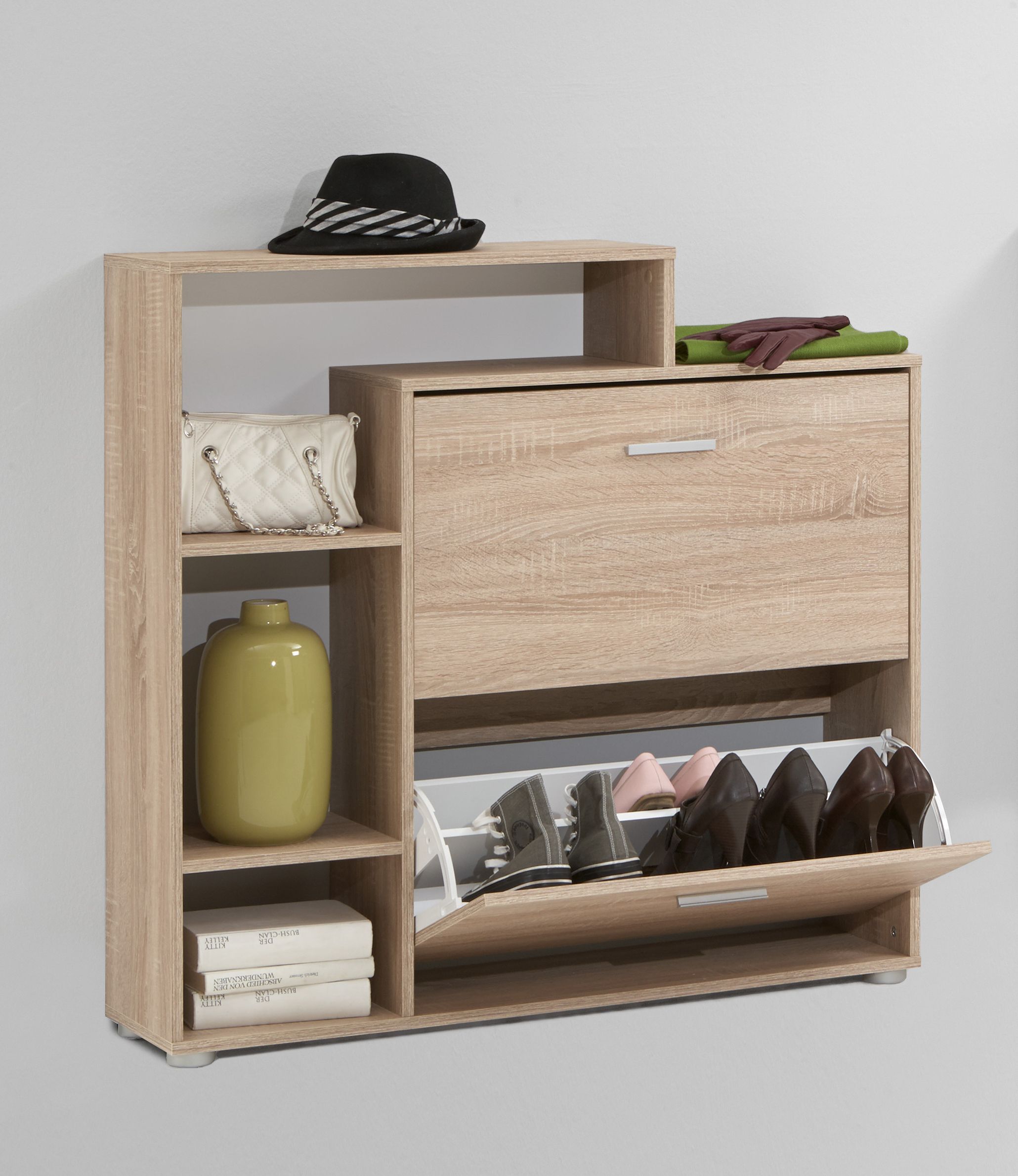 Pour compléter votre décor moderne, optez pour le porte-chaussures Texas, à plusieurs étagères d’exposition ainsi que de deux volets de rangement, chacun disposant de deux niveaux distincts.
