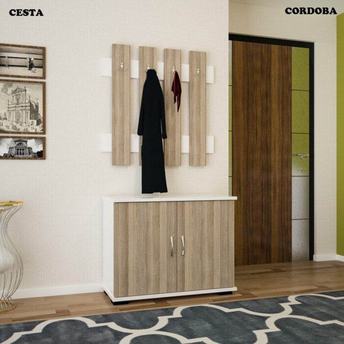 Le porte-chaussures Moscou se distingue de tout autour par son style moderne ainsi que de sa façon de mêler et d’associer le porte-manteau au meuble à chaussures de la manière la plus subtile possible !